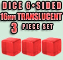 ![]() 3 piece set (16mm dice 3 of each color shown) |