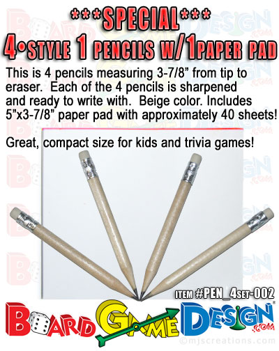 ![]() (4 beige colored pencils with erasers come pre-sharpened and measure approximately 3-7/8" from tip to eraser PLUS writing paper pad measuring 5"x3-7/8" with approximately 40 sheets)