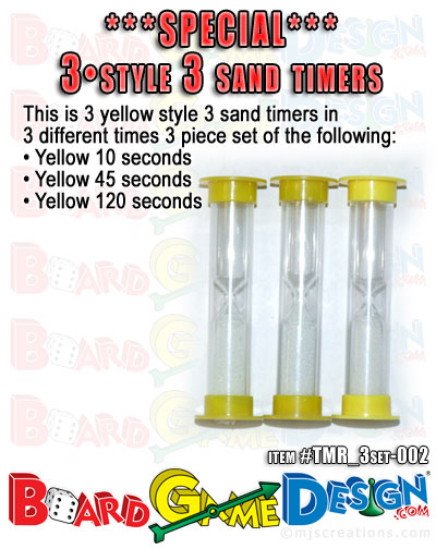 ![]() - 1 Yellow End Cap Sand Timer in 10 seconds - 1 Yellow End Cap Sand Timer in 45 seconds - 1 Yellow End Cap Sand Timer in 120 seconds |