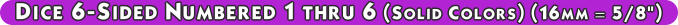DICE NUMBERED 1 thru 6 (6-sided, 16mm)