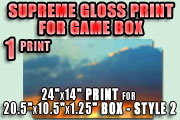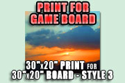 ![]() ![]() Print is 30"x20" [cut-to area is 29.75"x19.75"] (fits our SIX-fold Game Board STYLE 3 - 30"x20") - Game Board Print ONLY includes: 1 Supreme Gloss Print from your file. See specifications & printing requirements and cutting & mounting instructions. Don't want to get messy with the glue or cut your fingers? Let us do the labor for you! See printing requirements and cutting & mounting instructions, click here.