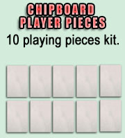 ![]() CHIPBOARD PLAYER PIECES for Card Stands. GREAT for making Custom Printed Playing Pieces. Each chip board piece is 52 pt. thick (equal to a little more than 5 standard business cards thickness.) To make them stay up, order our STANDS. |